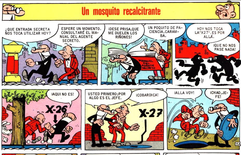Tan pronto Mortadelo y Filemón llegan a la T.I.A. el Súper y Bacterio les reciben con máscaras anti-gas y les mandan a casa. Allí un mosquito pica a Filemón y los agentes tratarán por todos los medios posibles acabar con el mosquito, que termina agrandado a tamaño gigante por culpa de un invento de Mortadelo.