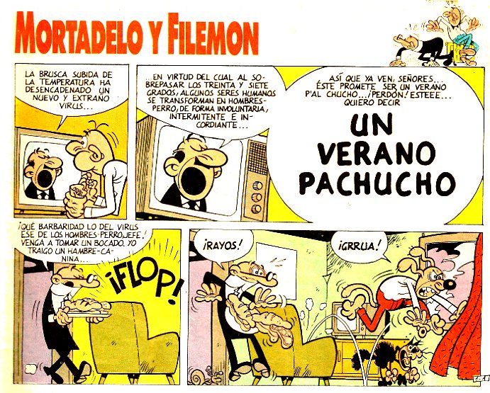 La brusca subida de la temperatura ha desencadenado un nuevo y extraño virus en virtud del cual al sobrepasar los treinta y siete grados, algunos seres humanos se transforman en hombres-perro de forma involuntaria. Filemón se verá afectado por el virus y, junto a Mortadelo, buscarán la manera de librarse del virus para poder volver a ser un individuo normal.