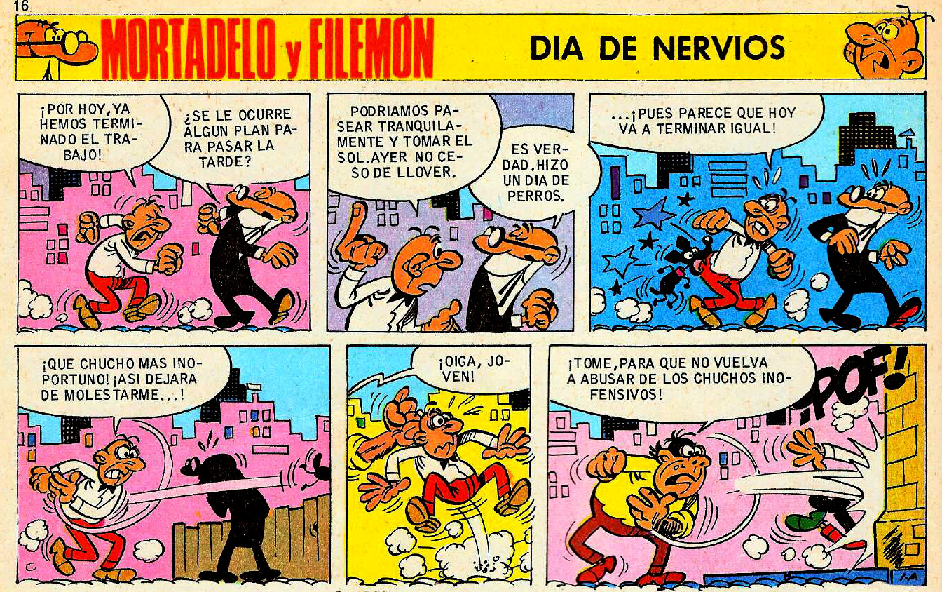 Nota: En la colección OLÉ la historieta se publicó titulada "¡Vaya día!" y en Pulgarcito como "Día de nervios" pero ambas historietas son la misma. Se ha indexado la historieta como "Día de nervios (II)" para distinguirla de otra historieta diferente que tuvo idéntico título.