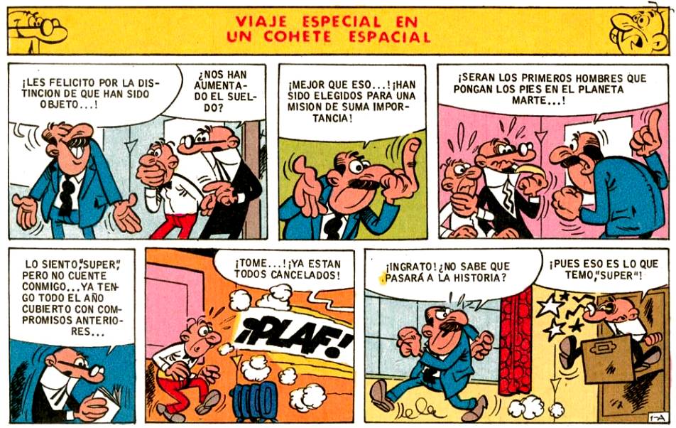El Súper "propone" a Mortadelo y Filemón un viaje espacial a Marte, pero lo que sucede en realidad forma parte de un experimento de simulación en el que Mortadelo y Filemón, convencidos de que viajan a Marte, no se mueven de la Tierra.