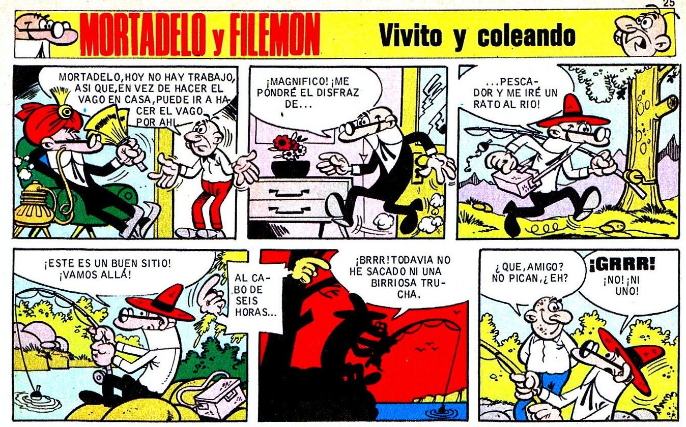 Versiona ala historieta publicada en el Pulgarcito nº 1580. Filemón le da un día de permiso a Mortadelo y éste se va de pesca. Un tipo le ofrece un pez para que no haga el ridículo yéndose de vacío. Mortadelo acepta y se presenta en la oficina presumiendo del tamaño del pez que ha pescado, pero no tardarán en descubrir que en su interior se esconde un peligroso villano.