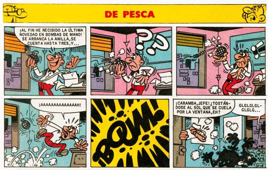 Mortadelo se pirra por la pesca y siempre que encuentra un hueco libre aprovecha para irse a pescar. El problema es que la caña y los aparejos de pescar de Mortadelo resultarán tremendamente peligrosos para su jefe, Filemón.