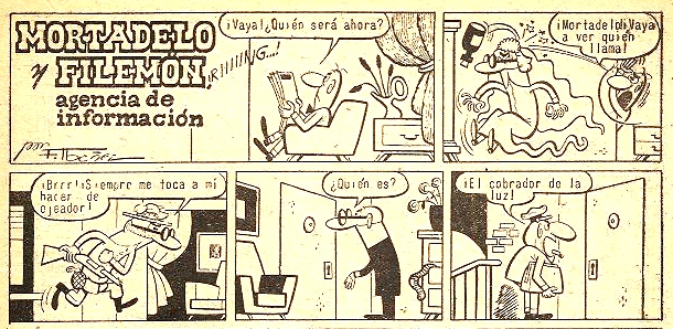 El cobrador de la luz viene a la agencia de información a cobrar el recibo de la luz y Mortadelo le comenta que no puede abrirle y que Filemón tiene puesta la trampa. El cobrador insiste en que abra la puerta y Mortadelo obedece órdenes...