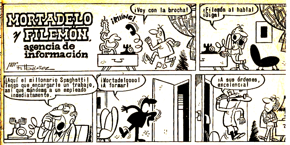 El millonario Spaghetti llama a Filemón para encargarle un trabajo y Filemón pide a Mortadelo que tome un tranvía y vaya a buscar al millonario. Mortadelo se toma tan al pie de la letra le recado de Filemón que se presenta en casa de Spaguetti tirando de un tranvía.