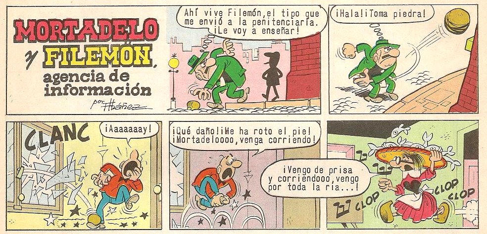 Un "gangster" al que Filemón había enviado a la penitenciaría le arroja una piedra desde la calle. El pedrusco rompe un cristal termina golpeándole en un pie. Filemón, lleno de dolor, ordena a Mortadelo que haga algo pero éste, en lugar de llamar a un doctor, llama a un vidriero para que repare el cristal de la ventana que la piedra había roto.