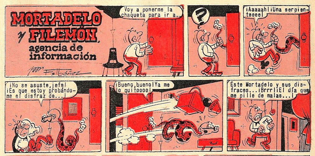 Como Filemón no hace más que llevarse un susto tras otro cada vez que Mortadelo se prueba un disfraz (el de serpiente, el de vikingo…) cuando lo ve de espaldas con un disfraz de guardia decide escarmentarlo y, cogiendo una cajita de hormigas caníbales, decide metérselas por el pescuezo. Pero entonces se da cuenta de que dicho guardia no era Mortadelo disfrazado sino un guardia de verdad que había venido a traer lotería.
