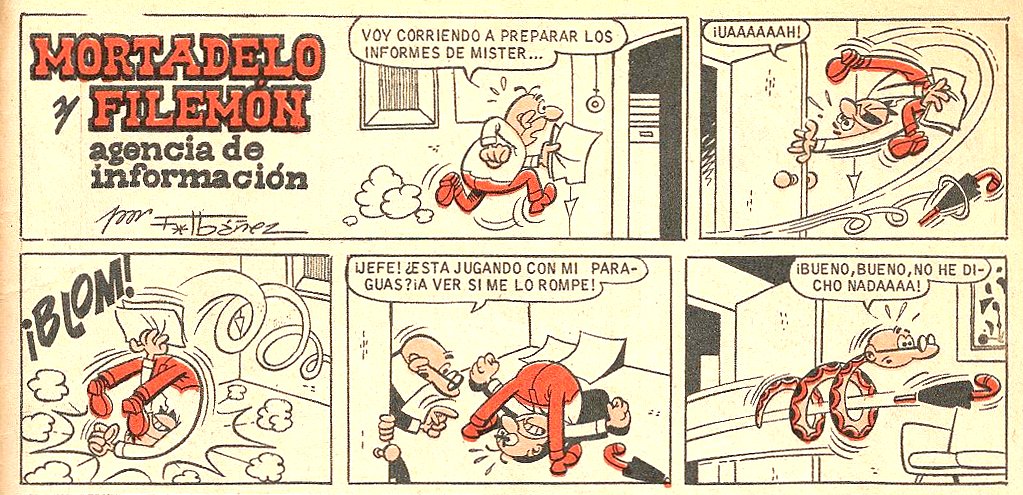Filemón no hace más que sufrir una desgracia tras otra con un paraguas de Mortadelo que se encuentra por todas partes y cuando por fin decide destruirlo quemándoselo éste le estalla en las narices y Mortadelo entonces le dice que había guardado en su interior una bomba que le había arrebatado a Jim "El Matraca".