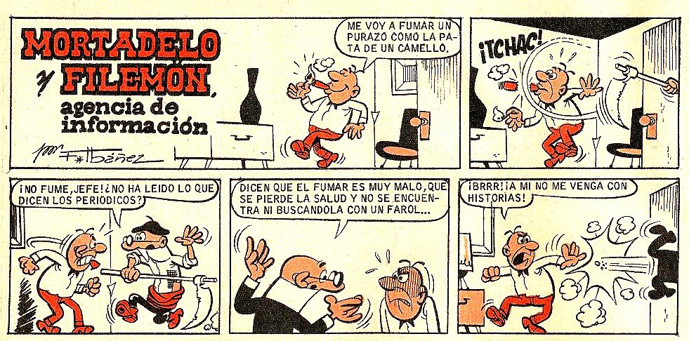 Mortadelo intenta en vano convencer a su jefe de que fumar es malo para la salud pero más tarde Filemón ve un puro sobre la mesa de aquel y decide fumárselo, sin saber que en realidad era un cohete de señales que se había agenciado Mortadelo y que lo había camuflado ahí.