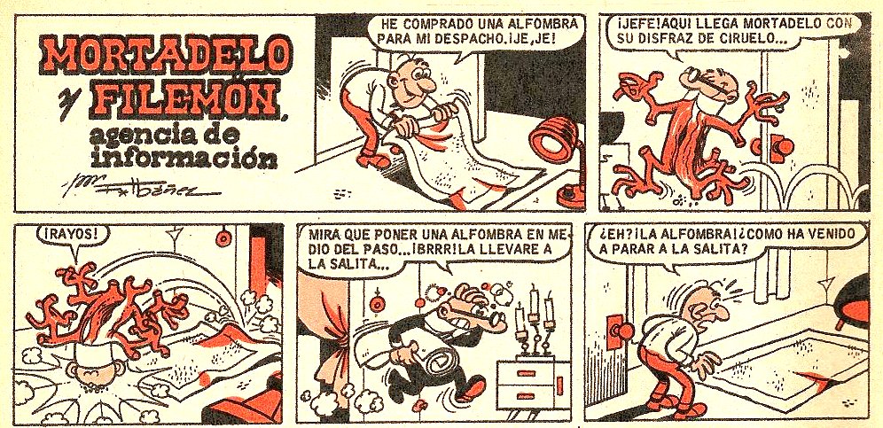 Filemón acabará volviéndose "chalupa" cuando crea que la alfombra que ha comprado cambia ella solita del despacho a la salita, de la salita al comedor y del comedor de nuevo al despacho, cuando en realidad era Mortadelo el que la cambiaba de sitio para que no molestase.