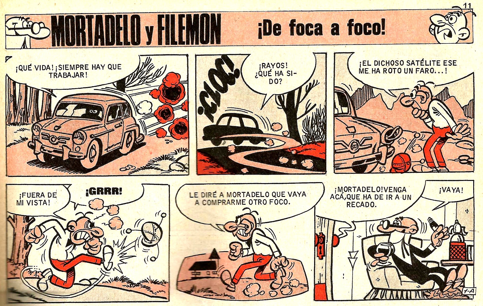 Filemón advierte que el faro de su coche está roto y encarga a Mortadelo que le compre uno nuevo. Éste se presenta en casa con una foca macho.
