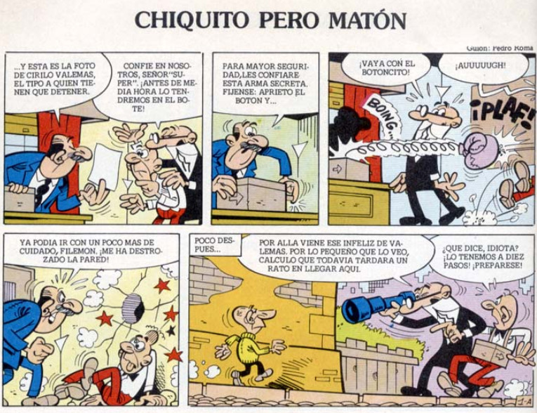 El Súper pide a Mortadelo y Filemón que atrapen a Cirilo Valemás y para su seguridad les prestará un arma contundente...