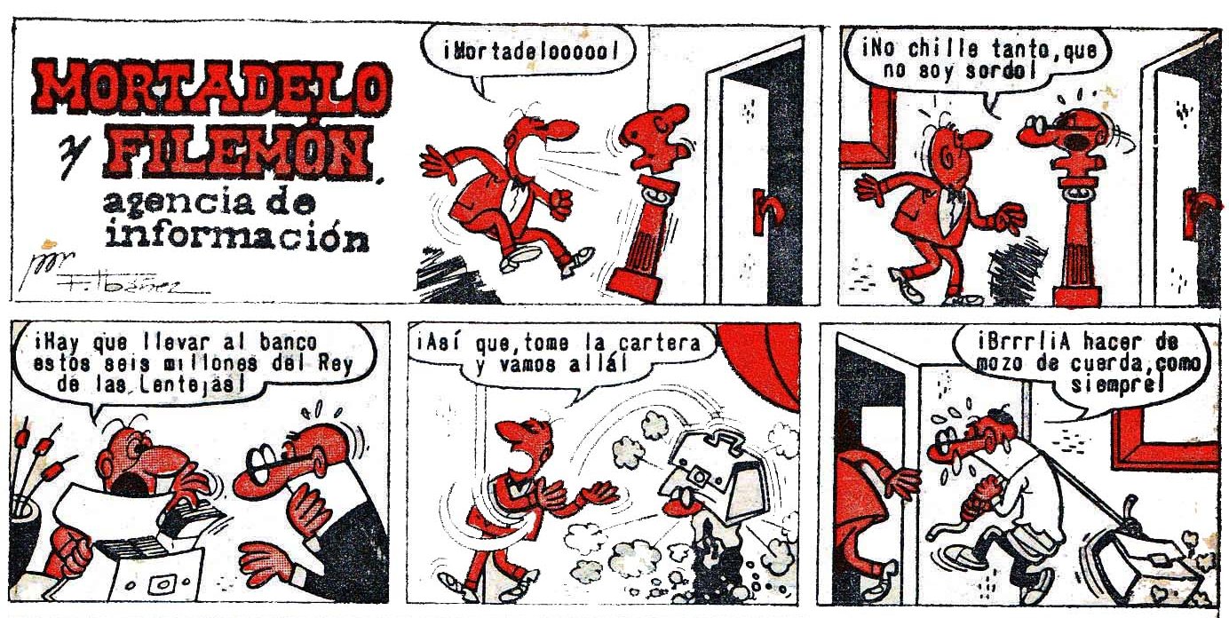 Mortadelo y Filemón tienen que llevar al banco seis millones pertenecientes al rey de las Lentejas. A Mortadelo pronto le entra el miedo y Filemón le entrega unas pastillas contra el miedo que parecen dar resultado ya que Mortadelo llega al banco sintiéndose mucho más ligero. Tan ligero, que el maletín donde llevaban los millones se había roto por su parte inferior y el agente había ido perdiéndolos todos por el camino.