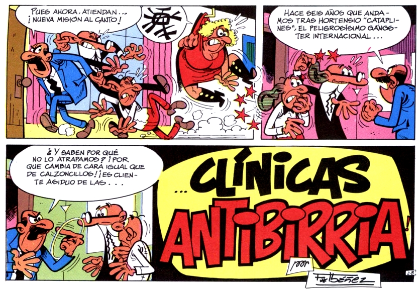 La T.I.A. tiene que capturar a un gángster internacional, Hortensio Cataplines, que recientemente se ha operado el rostro en las clínicas antibirria. La T.I.A. ha recibido el chivatazo de que el Cataplines anda por la ciudad y va a operarse de nuevo. Mortadelo y Filemón deberán ir a las clínicas antibirria haciéndose pasar por clientes para intentar capturarlo (Fte: Wikipedia).
