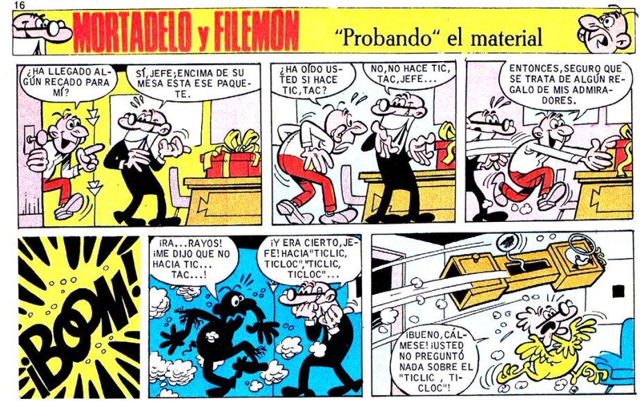 El Súper ha enviado a Mortadelo y Filemón material de lo más sofisticado y les pide que lo prueben. El lote incluye una cámara de fotos, una alfombra voladora y una ventana de "pacotilla" para confundir a los espías. La historieta fue preabocetada por Blas Sanchís y acabada por Jordi David Redo.