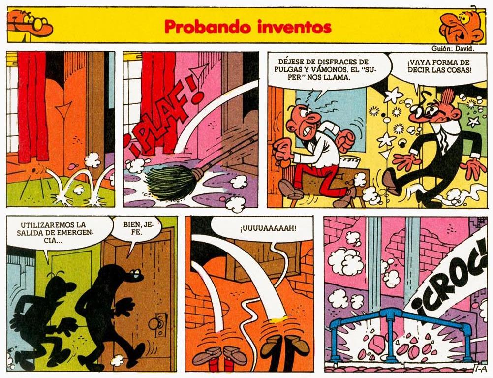 El Súper pide a Mortadelo y Filemón que prueben un fluído que, en contacto con un objeto o ser, hace que éste salga despedido a toda velocidad pero que, aplicado por cuarta vez, hace que el indivíduo y objeto salga volando por los aires.
