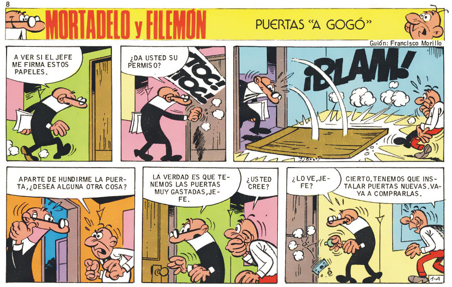 Los agentes Mortadelo y Filemón se percatan del mal estado en el que se encuentran las puertas de su vivienda y deciden sustituirlas por puertas nuevas.