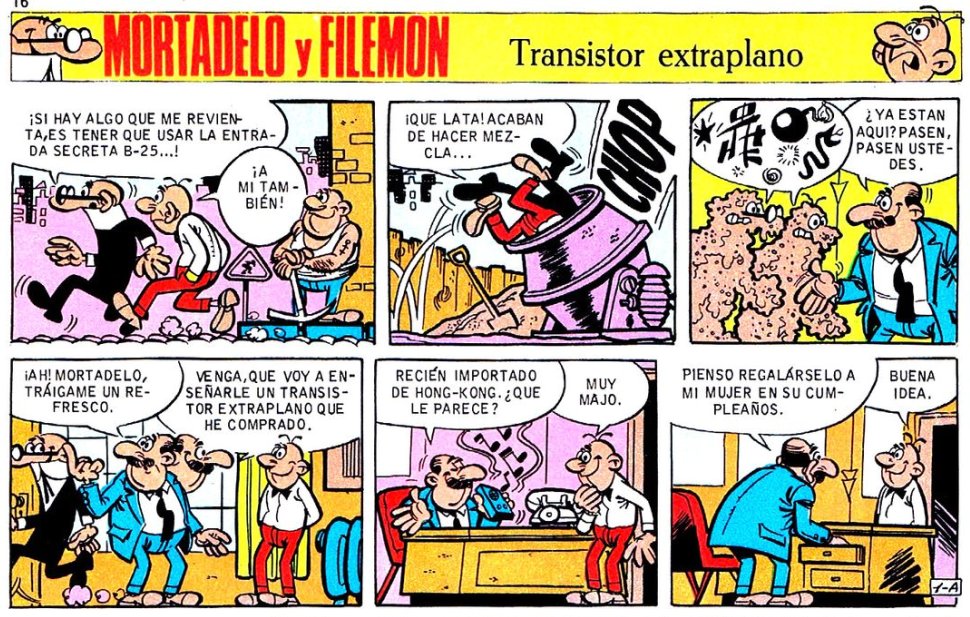 Mortadelo destruye una y otra vez el transistor que el Súper pensaba regalarle a su mujer. El guión de la historieta podría ser del propio Osete ya que no hemos localizado ninguna historieta de Francisco Ibáñez con un argumento similar (recordemos que todas las historietas realizadas por Martínez Osete en esta época fueron versiones de otras historietas de Mortadelo y Filemón realizadas por Francisco Ibáñez).