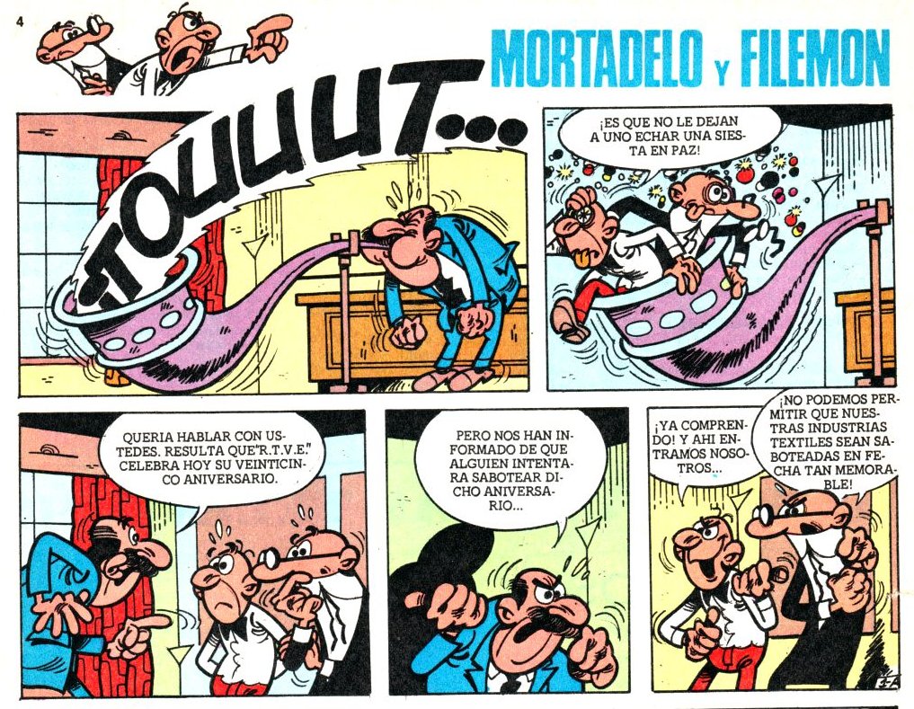 RTVE celebra su 25º aniversario y la T.I.A. ha recibido información secreta: alguien intenta sabotear dicho aniversario. La misión de Mortadelo y Filemón consistirá precisamente en evitar cualquier sabotaje en el ente público.