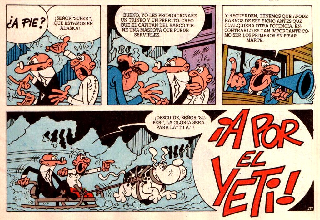 La T.I.A. quiere cazar al yeti y para ello han enviado un barco a Alaska en el que viajan el Súper, Mortadelo y Filemón. Pero el barco se ha quedado bloqueado por una masa de hielo y el Súper pide a sus "mejores" agentes que continúen a pie en un trineo y cumplan con la misión de atrapar al yeti.