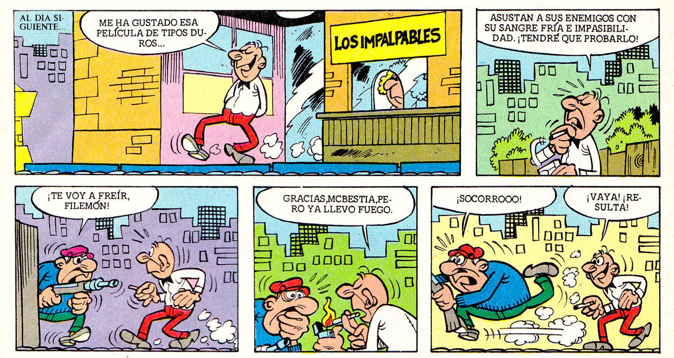Filemón se sorprende de cómo se alejan de él todos los villanos que le salen al paso cuando se muestra como un tipo duro ante ellos. No tardará en descubrir es del sablista McMáquez de quien huyen.