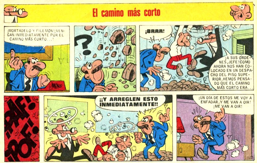 El Súper pide a Mortadelo y Filemón que acudan a su despacho por el camino más corto, pero todos los métodos que utilizan los agentes para llegar ante el Súper no le traerán más que problemas.