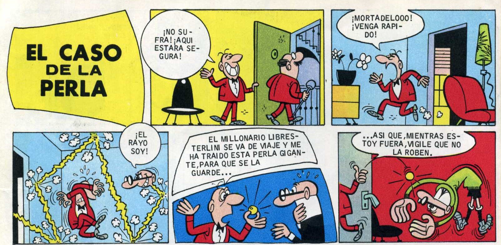 El millonario Libresterlini ha confiado la custodia de una perla gigante de incalculable valor a la "Agencia de Información" y Filemón decide dejar a Mortadelo al cargo. A su regreso la perla sigue intacta pero la agencia ha sido completamente limpiada por los cacos.