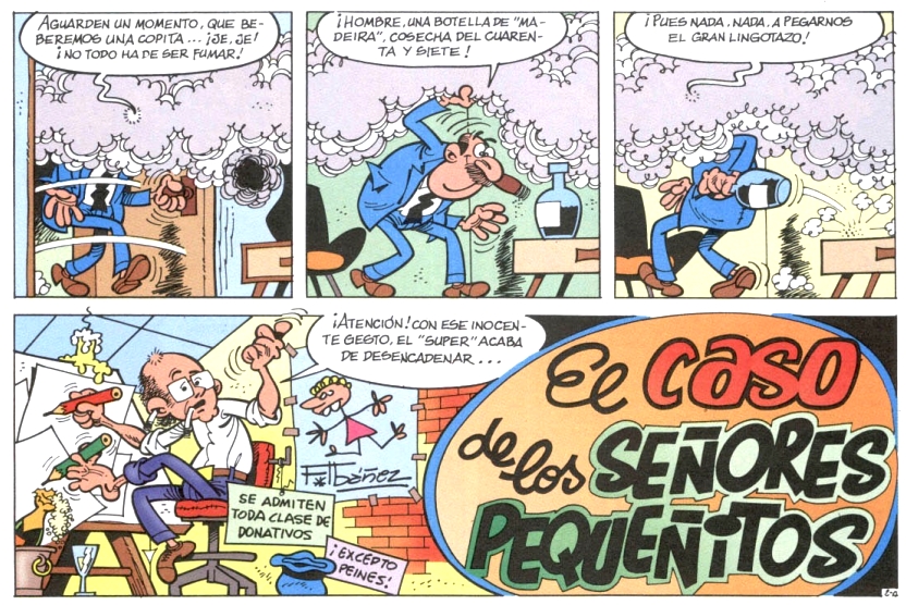 El profesor Bacterio ha inventado la solución XJ-73, un reconstituyente que supuestamente convierte a quien se lo toma en un superhombre. Por equivocación el Súper confunde la botella del invento con una botella de vino y se la sirve a sus invitados. El brebaje funciona mal y el Súper se vuelve pequeñito. Entonces envía a Mortadelo y Filemón a buscar a los invitados por si también se vuelven pequeños. Mortadelo y Filemón deberán traer a esos señores pequeñitos hasta la T.I.A. para que el profesor Bacterio pueda aplicarles un antídoto (Fte: Wikipedia).