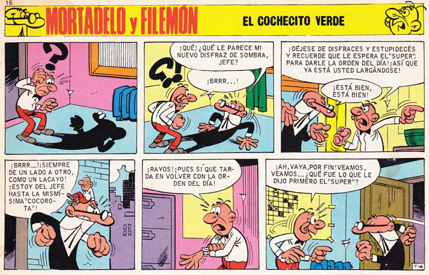 El Súper pide a Mortadelo y Filemón que localicen un Seat 600 verde que fue robado el día anterior en la calle del Merluzo.