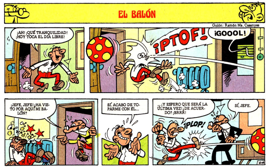 Filemón tiene el día libre pero Mortadelo le amargará con sus tonterías futboleras.