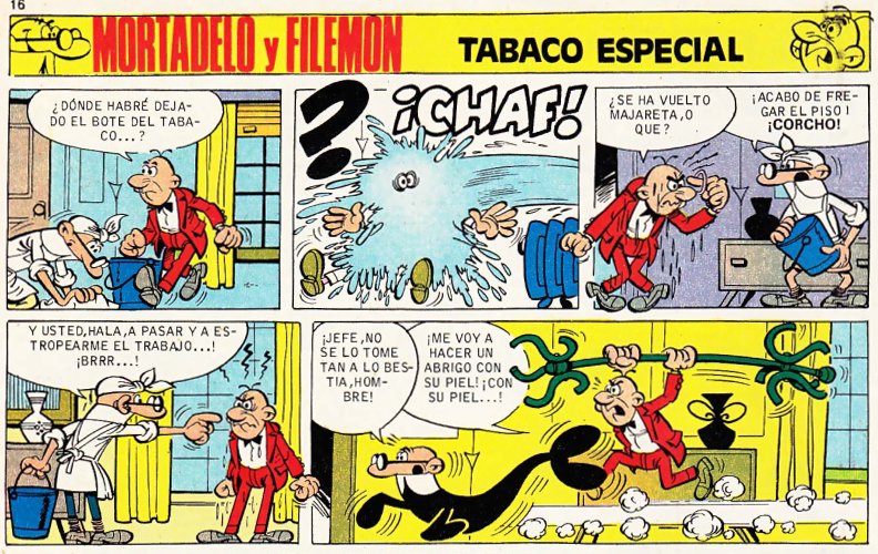 Versiona a la historieta publicada en el Pulgarcito nº 1421. Filemón avisa a Mortadelo de que un tipo gordo le ha robado su caja de tabaco y Mortadelo se confunde de tipo y recupera una caja cargada de pólvora que termina explotándole a Filemón en las narices.