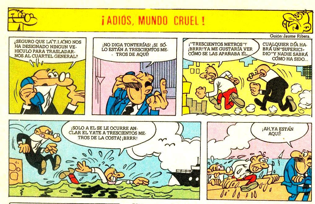 El Súper pide a Mortadelo y Filemón que destruyan un mapa-mundi (en forma de globo terráqueo) que contiene diversas señalizaciones con las sedes de la organización que podría resultar comprometida. Los agentes intentan destruir el globo por todos los medios posibles hasta que termina estallando, ya que contenía un peligroso gas altamente explosivo en su interior. El Súper, como casi siempre, avisa demasiado tarde.