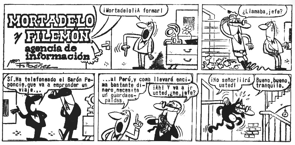 El barón Peponcio se va de viaje a Perú y necesita un guardaespaldas para custodiar su dinero. Filemón decide enviar a Mortadelo como guardespaldas del barón y Mortadelo se limita a aplicar su función protectora al pie de la letra.