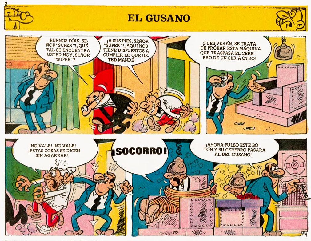 El Súper quiere que Mortadelo y Filemón prueben una máquina que es capaz de intercambiar los cerebros entre dos seres vivos. Finalmente intercambia el cerebro de Filemón por el de un gusano. Posteriormente el Súper decide que los agentes aprovechen la nueva apariencia física de Filemón para colarse en un edificio enemigo y recuperar unos planos robados, pero el aspecto de Filemón terminará siendo más un inconveniente que una ventaja.