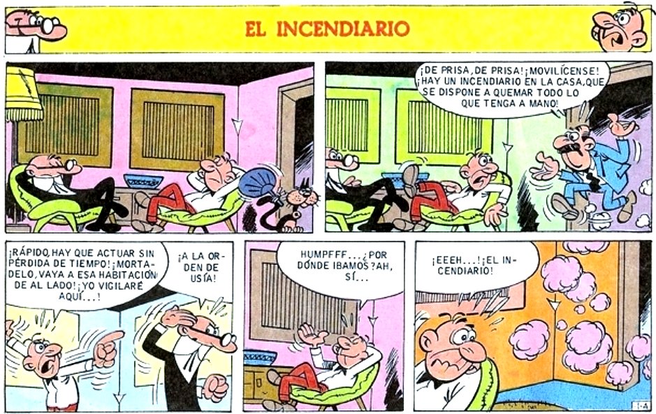 Hay un incendiario en la TIA que se dispone a quemar todo el mobiliario. El Súper pedirá a Mortadelo y Filemón que se movilicen para intentar evitarlo.
