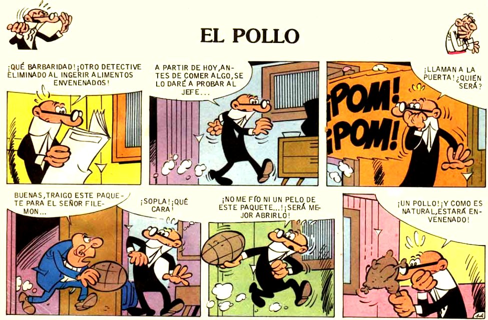 Mortadelo recibe un paquete para Filemón que resulta contener un pollo. Mortadelo, creyéndolo envenenado se deshace de él sin saber que en realidad llevaba camuflados en su interior los diamantes del maharajá de Kankubala. Se trata en realidad de una versión de otra historieta de Francisco Ibáñez publicada en el Pulgarcito nº 1423.