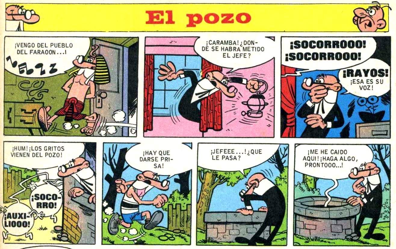 Filemón se ha caído a un pozo y Mortadelo, en lugar de ayudarle a salir de él, aprovecha para tumbarse una semana a la bartola bebiendo y fumando el coñac y los cigarros de su jefe. Se trata de una versión que Osete realizó a partir de la historieta de Ibáñez publicada en el Pulgarcito nº 1548.