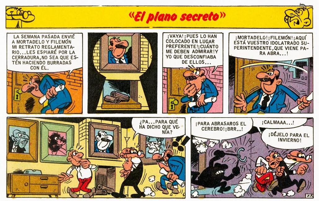 El Súper confía un plano secretísimo a Mortadelo y Filemón para que lo custodien. Al parecer el enemigo se muere de ganas por fotografiarlo.