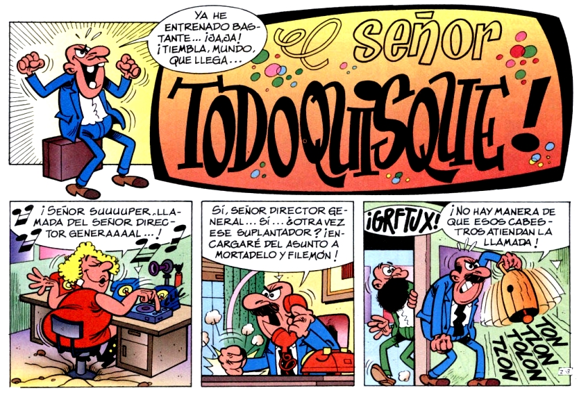 "El señor Todoquisque" es un tipo que se disfraza imitando a gente de alta alcurnia y aprovecha su parecido para fines malvados. Mortadelo y Filemón deberán detenerlo. La única pista que tienen para reconocerle es que "el señor Todoquisque" tiene una verruga en el trasero... (Fte: Wikipedia).