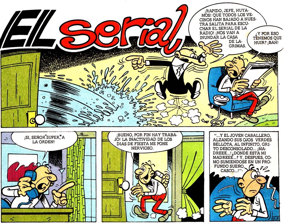 Filemón se presenta en casa con una misión del Súper y se encuentra a Mortadelo escuchando un serial radiofónico llorando a más no poder. Rápidamente le confisca la radio y le comunica que su misión consistirá esta vez en recuperar unos planos que una banda de gángsters han robado a la T.I.A.