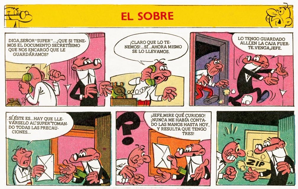 El Súper llama a Mortadelo y Filemón para que le traigan un sobre importantísimo a su despacho. Los agentes llegan a la T.I.A. con el sobre vacío y le confiesan la tragedia al Súper, que les revelará que, accidentalmente, les había dejado un sobre vacío.