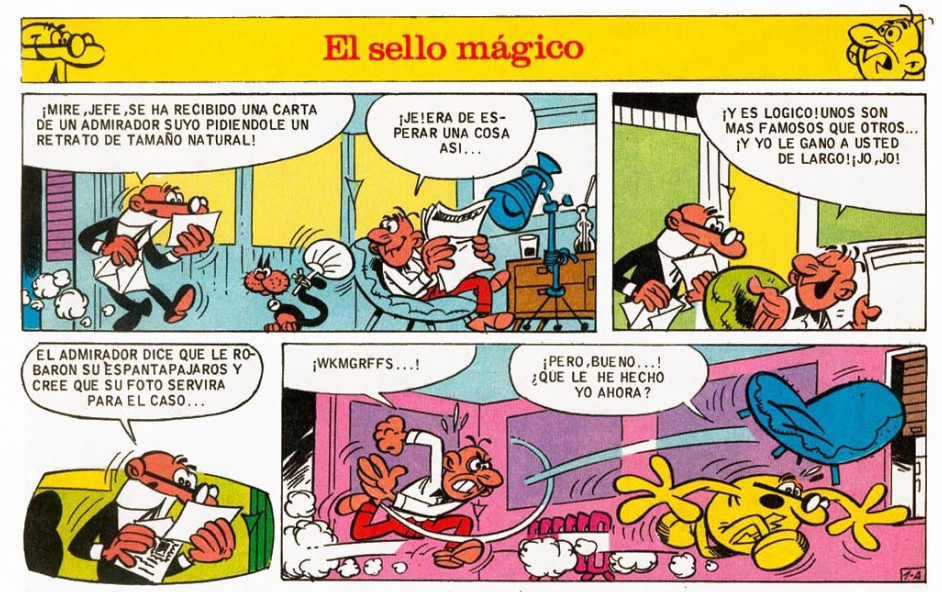 Mortadelo y Filemón tratarán de recuperaer el sobre de la carta que recibieron de Renania creyendo que el valor del sello que éste traía era de gran valor pero cuando lo recuperan resulta no ser el sello por el que en la prensa ofrecían una recompensa. La historieta es un "remake" de otra realizada por Ibáñez publicada en el Pulgarcito 1914 y retitulada posteriormente como "Un sello muy valioso" y "El sello".