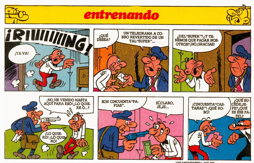 Es día de entrenamiento y el Súper ha pedido a Mortadelo y Filemón que se presenten en el gimnasio de la organización.