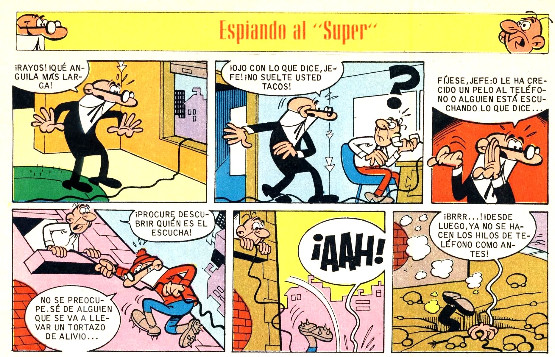A Mortadelo se le ocurre la idea de intervenir la línea telefónica del Súper para saber cuando habla mal de ellos, pero los agentes se llevarán una terrible sorpresa. La historieta está preabocetada por Blas Sanchís y acabada por Jordi David Redo.