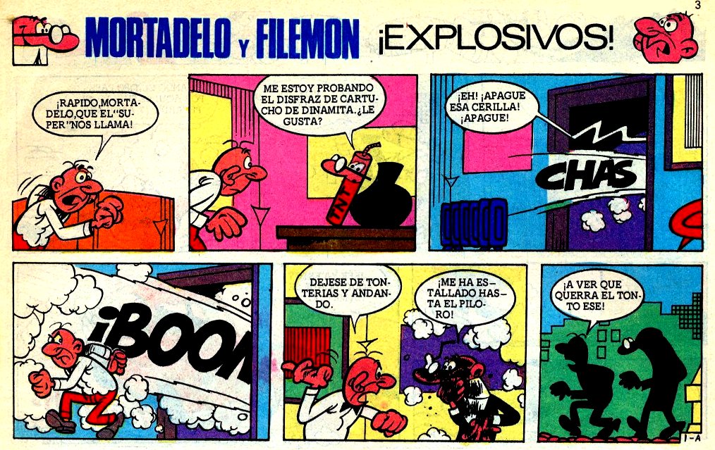 Hay un gamberro que anda poniendo petardos por todas partes y el Súper pide a Mortadelo y Filemón que le detengan inmediatamente.