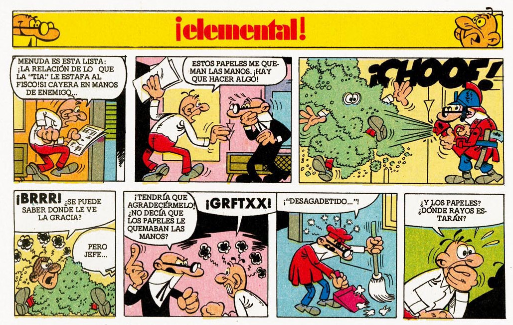 Filemón tiene en su poder unos papeles en los que se muestran las cantidades que la T.I.A. ha estafado al fisco por lo que pondrá especial cuidado con ellos. Pero pronto irrumpe Mortadelo y los papeles desaparecen misteriosamente...
