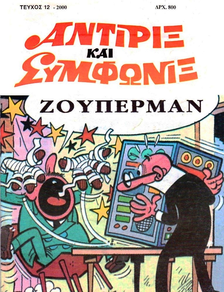 En Grecia las aventuras de Mortadelo y Filemón se publicaron bajo el nombre de "Antirix kai Symphonix", pronunciado Andirix ke Simfonix, y escrito Αντιριξ και Συμφωνιξ. La editorial EDIMAS publicó 84 números a partir de 1993 (y hasta 1999). En los años 2000 y 2001 la editorial publicó 24 números más (bajo el nombre de "Oscar Press" a partir del numero 11) que, aunque llevaron nuevas portadas, contenían reediciones de los primeros números de la etapa anterior. Entre los años 2002 y 2003 se publicaron los últimos 14 números de la colección, que también contuvieron reediciones de números ya publicados. El nombre de los agentes en Grecia viene a significar literalmente algo así como 'El que está de acuerdo y el que no está de acuerdo'.