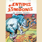 En Grecia las aventuras de Mortadelo y Filemón se publicaron bajo el nombre de "Antirix kai Symphonix", pronunciado Andirix ke Simfonix, y escrito Αντιριξ και Συμφωνιξ. La editorial EDIMAS publicó 84 números a partir de 1993 (y hasta 1999). En los años 2000 y 2001 la editorial publicó 24 números más (bajo el nombre de "Oscar Press" a partir del numero 11) que, aunque llevaron nuevas portadas, contenían reediciones de los primeros números de la etapa anterior. Entre los años 2002 y 2003 se publicaron los últimos 14 números de la colección, que también contuvieron reediciones de números ya publicados. El nombre de los agentes en Grecia viene a significar literalmente algo así como 'El que está de acuerdo y el que no está de acuerdo'.