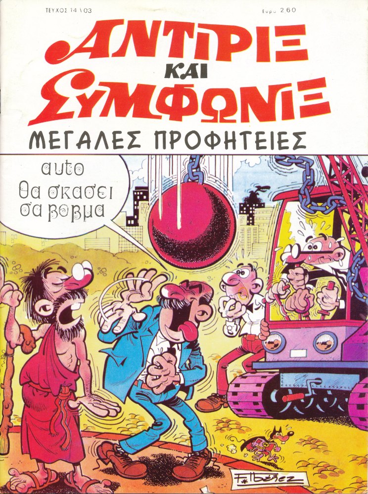 En Grecia las aventuras de Mortadelo y Filemón se publicaron bajo el nombre de "Antirix kai Symphonix", pronunciado Andirix ke Simfonix, y escrito Αντιριξ και Συμφωνιξ. La editorial EDIMAS publicó 84 números a partir de 1993 (y hasta 1999). En los años 2000 y 2001 la editorial publicó 24 números más (bajo el nombre de "Oscar Press" a partir del numero 11) que, aunque llevaron nuevas portadas, contenían reediciones de los primeros números de la etapa anterior. Entre los años 2002 y 2003 se publicaron los últimos 14 números de la colección, que también contuvieron reediciones de números ya publicados. El nombre de los agentes en Grecia viene a significar literalmente algo así como 'El que está de acuerdo y el que no está de acuerdo'.