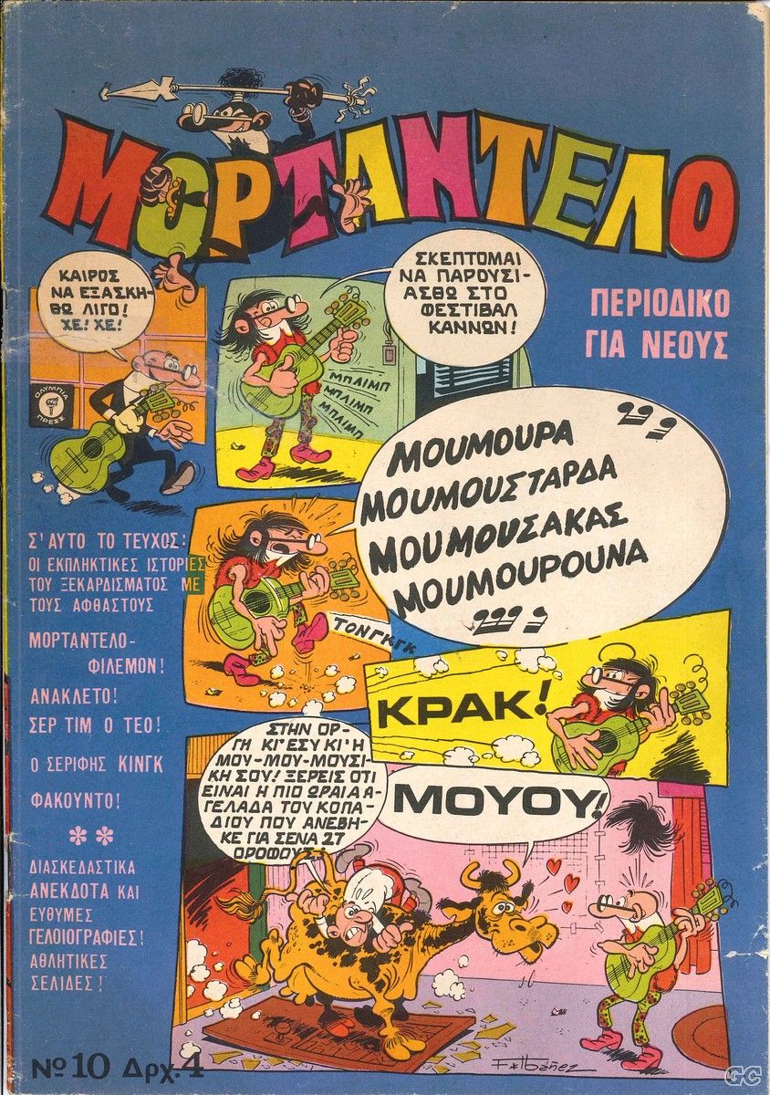 En Grecia las aventuras de Mortadelo y Filemón se publicaron originalmente en la revista “ΜΟΡΤΑΝΤΕΛΟ” (pronunciado “Mortandelo”). Se trataba de una reedición de una decena de números de la revista Mortadelo de Bruguera que fueron publicados en 1972 por la editorial Olympia Press.