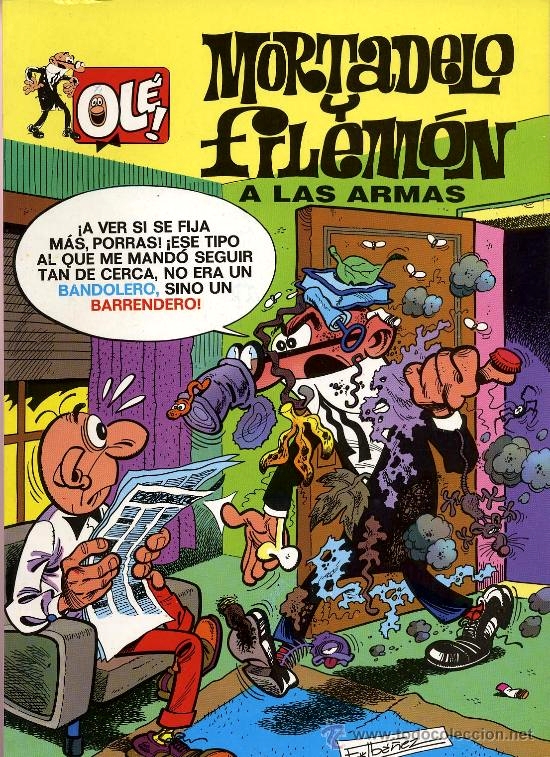 Libros de historietas de 64 páginas más cubiertas en color, encuadernado en rústica. Edición de las aventuras de Mortadelo y Filemón en libro. Edición con cubierta plastificada, por lo cual hay quienes catalogan esta colección como OLÉ - portada satinada- (Fte: Tebeosfera).